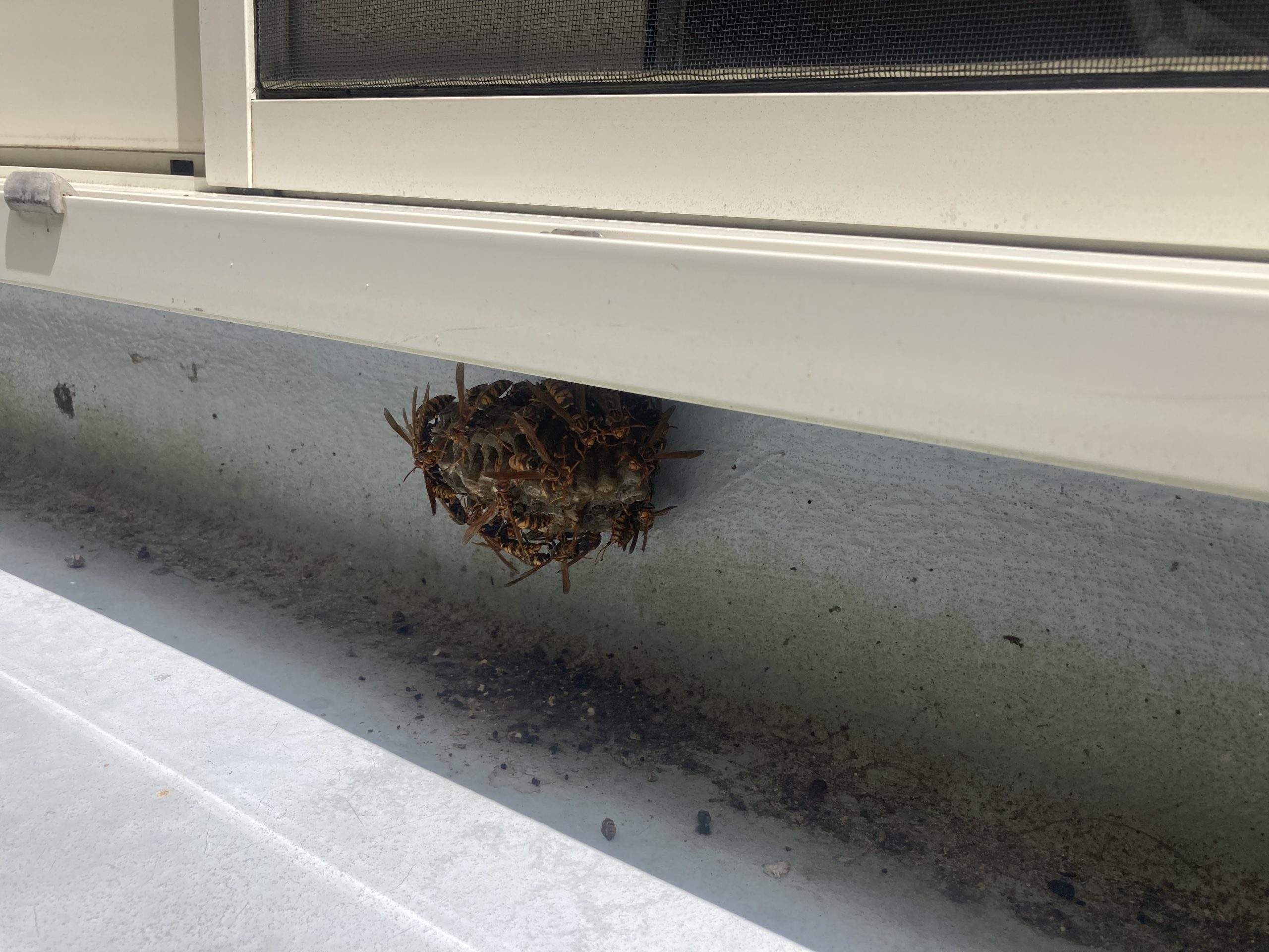 2023.08.23 お客様の声 m.yamazumi 兵庫県 北区 M様 ベランダに蜂がいるなと思い見てみると サッシの下に小さいですが巣を作っていました。 お値段も表示通りで迅速な対応をしていただきました。 ありがとうございます。